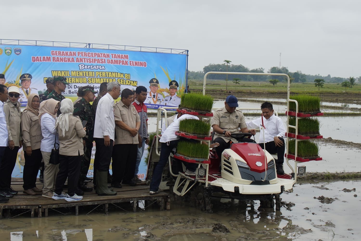 OKU TIMUR — Pemerintah pusat dan daerah memperkuat langkah antisipatif menghadapi potensi dampak El Nino melalui gerakan percepatan tanam di Desa Sidomakmur, Kecamatan Belitang, Kabupaten OKU Timur, Kamis (23/4/2026).