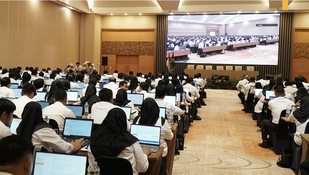 Badan Pertanahan Nasional Provinsi Sumatera Selatan, melalui Badan Pengembangan Sumber Daya Manusia Kementerian ATR/BPN mengikuti Asesmen CPPPK di Lingkungan Kementerian ATR/BPN secara daring di Ballroom Hotel Aryaduta Palembang, Senin (28/07/2025).