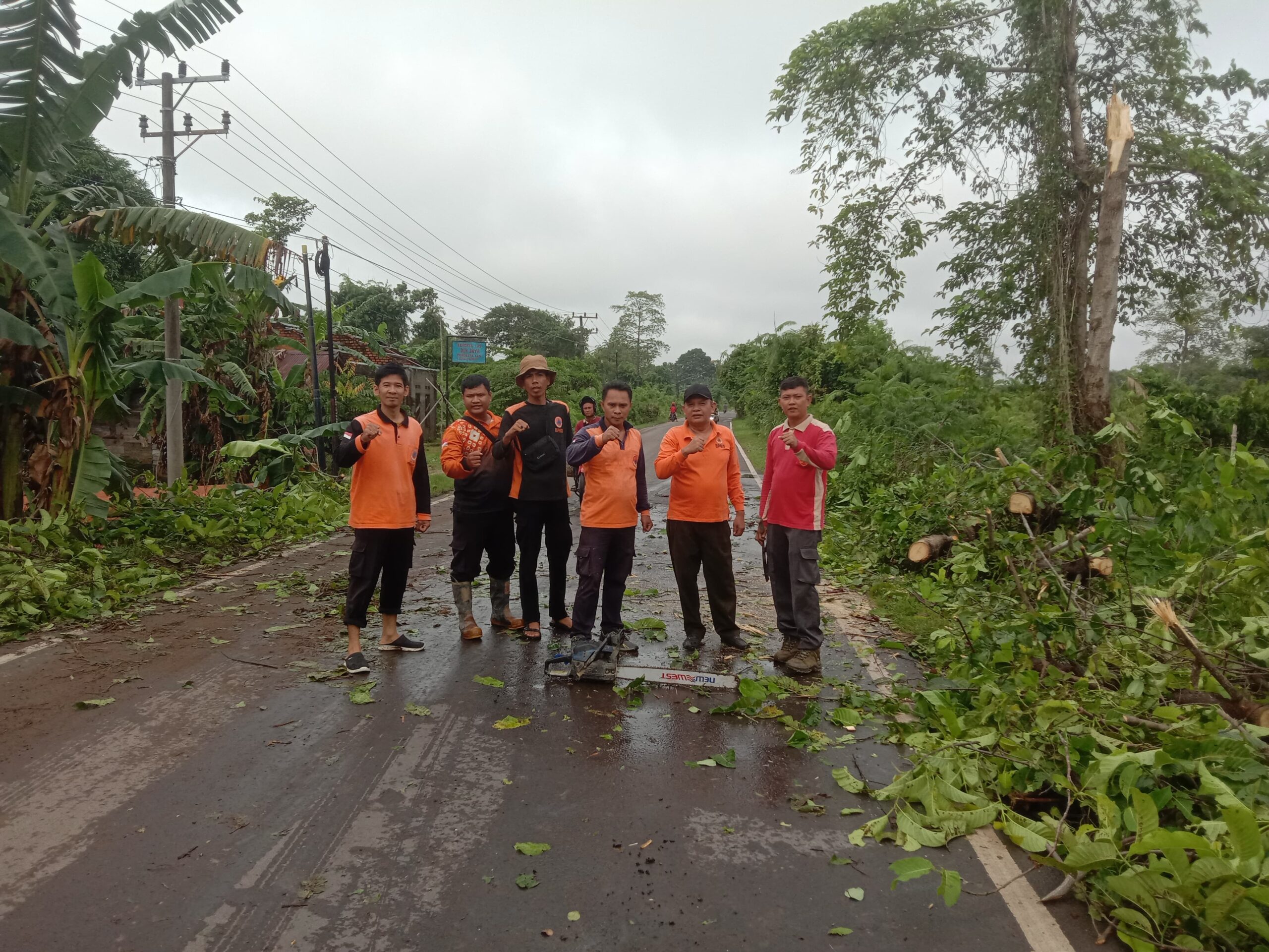 Tim gabungan tidak hanya melakukan pembersihan menggunakan gergaji mesin dan alat berat, tetapi juga berkoordinasi dengan pihak PLN untuk memulihkan jaringan listrik yang terganggu.