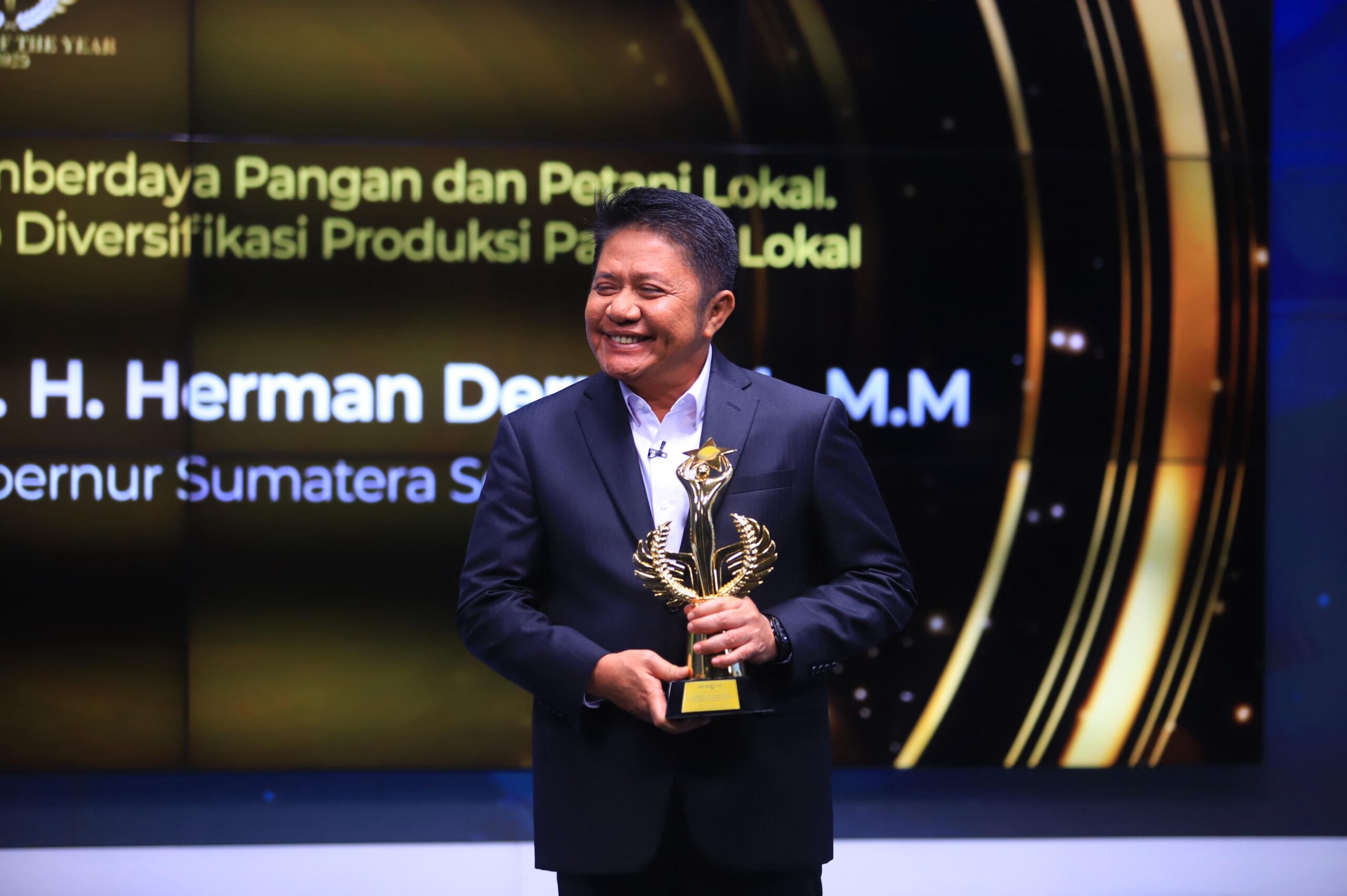 Herman Deru dianugerahi penghargaan pada kategori Pemberdaya Pangan dan Petani Lokal, subkategori Diversifikasi Produksi Pangan Lokal.