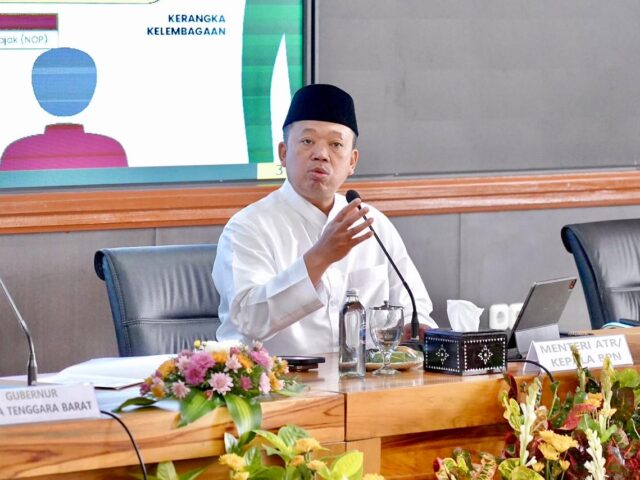 Mataram – Menteri Agraria dan Tata Ruang/Kepala Badan Pertanahan Nasional (ATR/BPN), Nusron Wahid, menghadiri Pengukuhan dan Silaturahmi Kebangsaan Dewan Pimpinan Majelis Ulama Indonesia (MUI) Nusa Tenggara Barat (NTB) Masa Khidmat 2025-2030.