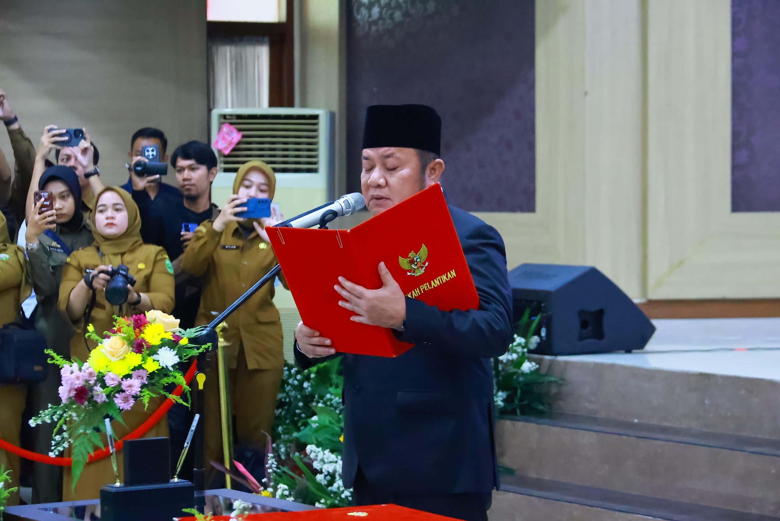 Pelantikan yang berlangsung di Aula Putri Kembang Dadar BPSDMD Sumsel ini mencakup pejabat struktural dan fungsional dari berbagai tingkatan eselon dan unit kerja.