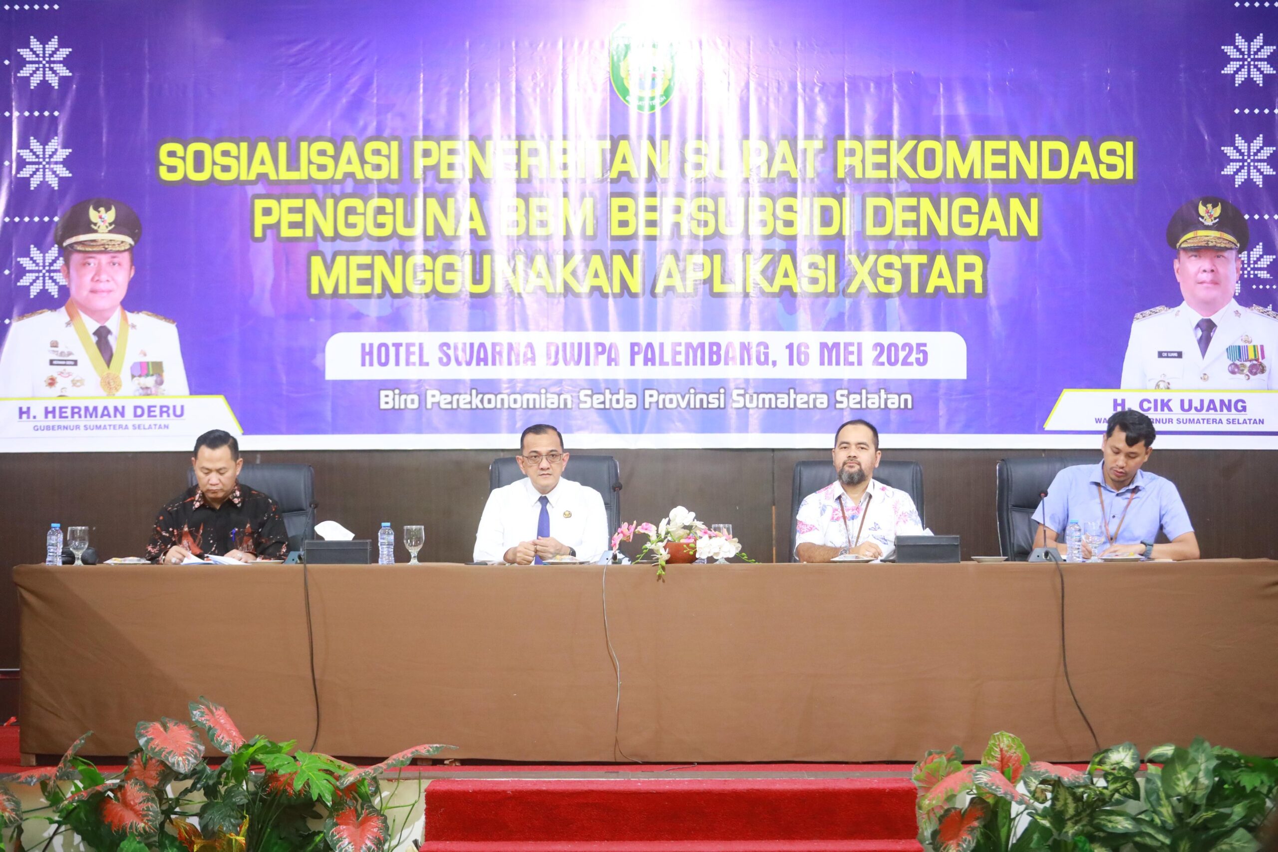 Hal ini disampaikan Sekretaris Daerah (Sekda) Sumsel Edward Candra membuka Sosialisasi Penerbitan Surat Rekomendasi Pengguna BBM Bersubsidi melalui Aplikasi XSTAR, yang digelar Biro Perekonomian Setda Provinsi Sumsel bekerja sama dengan BPH Migas dan Pertamina Patra Niaga Regional Sumbagsel di Hotel Swarna Dwipa Palembang, Jumat (16/5/2025).
