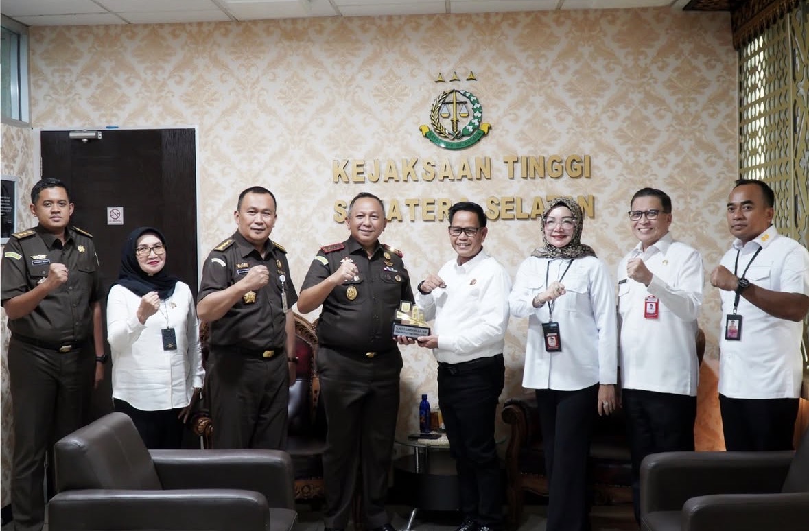 PALEMBANG – Kepala Kantor Wilayah (Kakanwil) Badan Pertanahan Nasional (BPN) Sumatra Selatan Rahmat, didampingi Kepala Bagian Tata Usaha dan Kepala Bidang beserta jajaran melaksanakan Audiensi dengan Kepala Kejaksaan Tinggi Sumsel Ketut Sumedana.