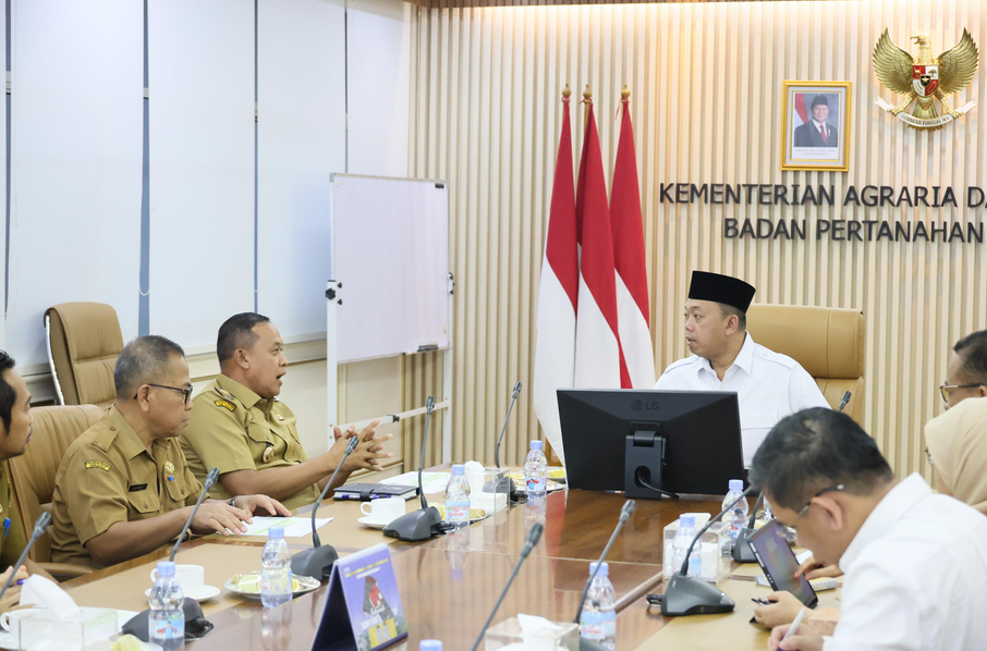 Menteri Agraria dan Tata Ruang/Kepala Badan Pertanahan Nasional (ATR/BPN), Nusron Wahid, menerima audiensi Wali Kota Bekasi, Tri Adhianto Tjahyono, bersama jajaran Pemerintah Kota (Pemkot) Bekasi di Ruang Rapat Menteri ATR/BPN, Jakarta.