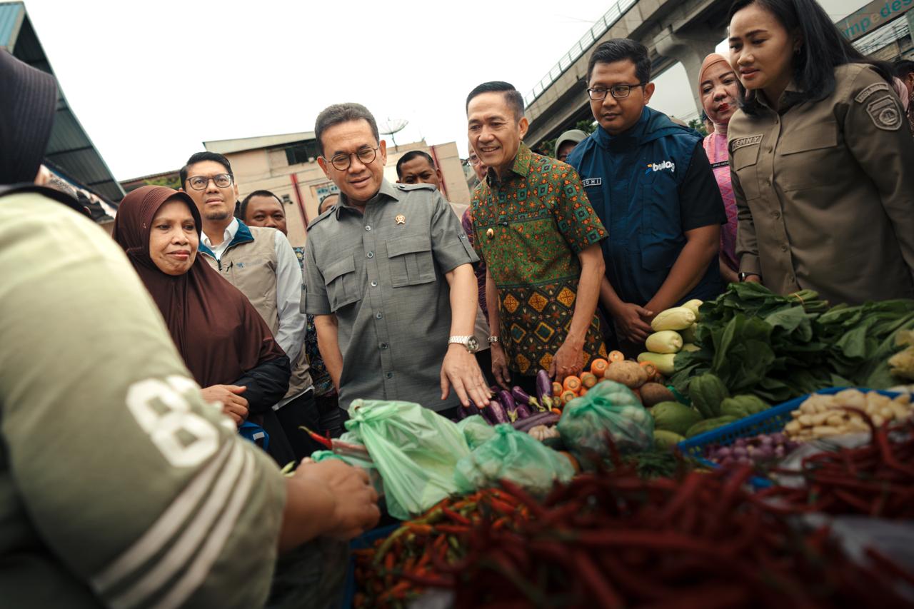 Dalam peninjauan tersebut, Mendag dan Wali Kota menyusuri sejumlah kios pedagang, memeriksa langsung harga komoditas, serta berdialog dengan penjual dan pembeli guna mengetahui kondisi pasar terkini.