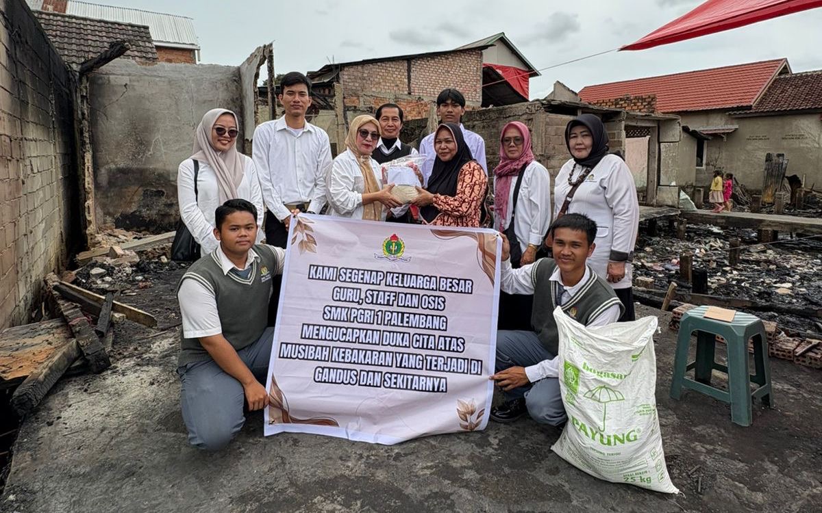 Musibah kebakaran di gang sempit Kelurahan Karang Jaya, Kecamatan Gandus, Palembang ternyata ikut dirasakan keluarga besar SMK PGRI 1 Palembang.